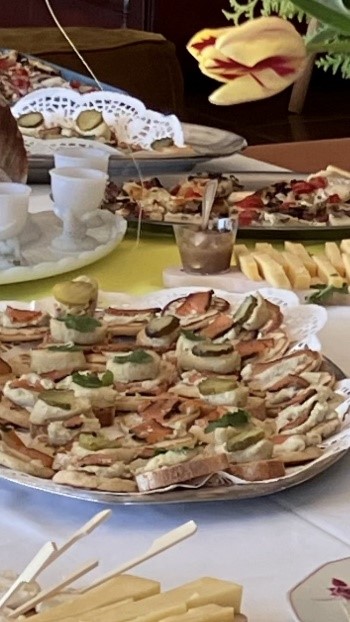 Personnellement je dépose une tranche de "terrine" sur un blinis ou une tranche de baguette de campagne, j'agrémente selon l'inspiration du moment avec une rondelle de cornichon, une feuille de coriandre, une fine tranche de saumon fumé…..
